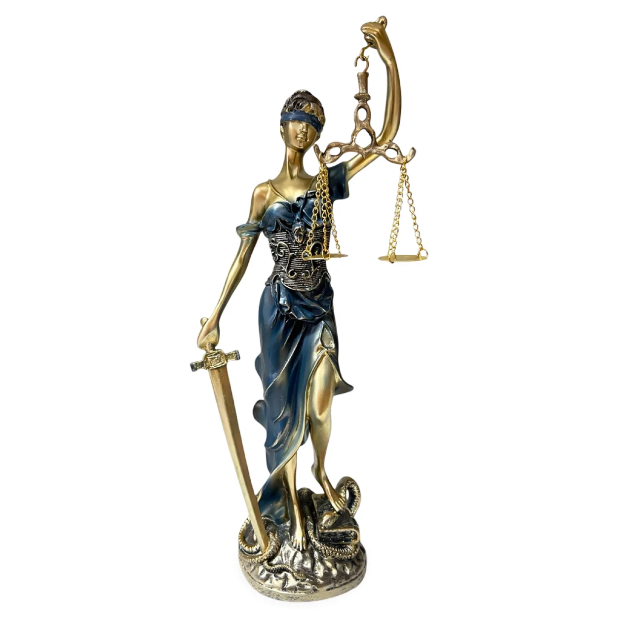 Adaletin evrensel sembolü olan Themis'in zarif ve modern yorumuyla tasarlanmış bu eşsiz polyester biblo, mekanlarınıza derinlik ve anlam katıyor. Hukuk dünyasının güçlü temsili olan Themis, gözleri bağlı şekilde terazi ve kılıç tutarak tarafsızlığı ve kararlılığı simgeler.