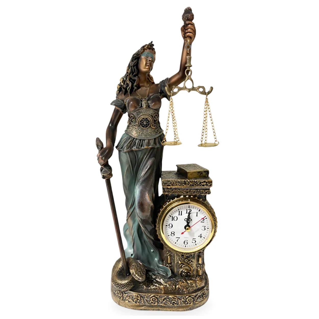 Hukuk Temalı Polyester Adalet Tanrıçası Biblosu Saatli Dekoratif Masa Objesi