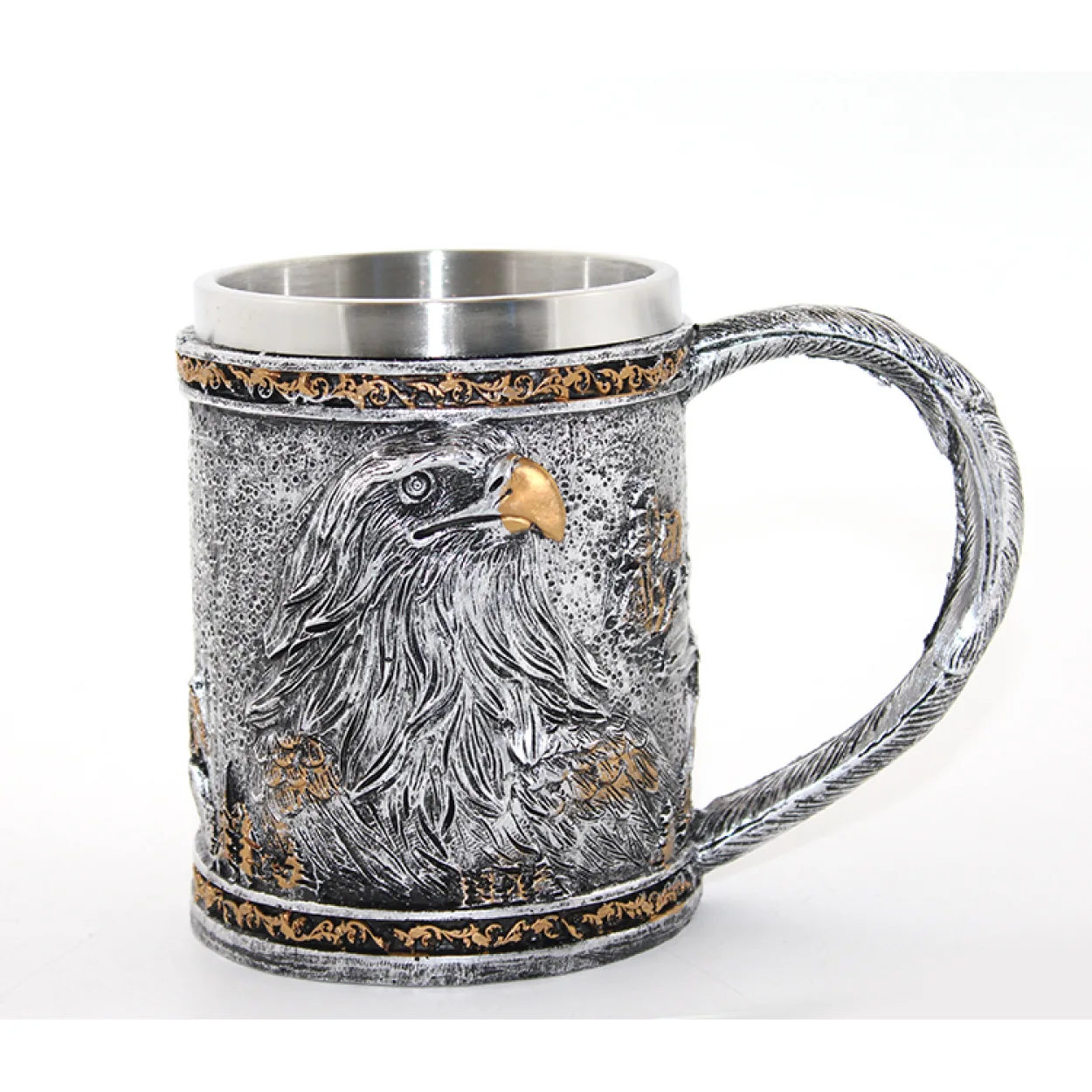 Kartal Motifli Kabartmalı Paslanmaz Çelik Kupa Bardak | Dekoratif Antik Metal Kupa