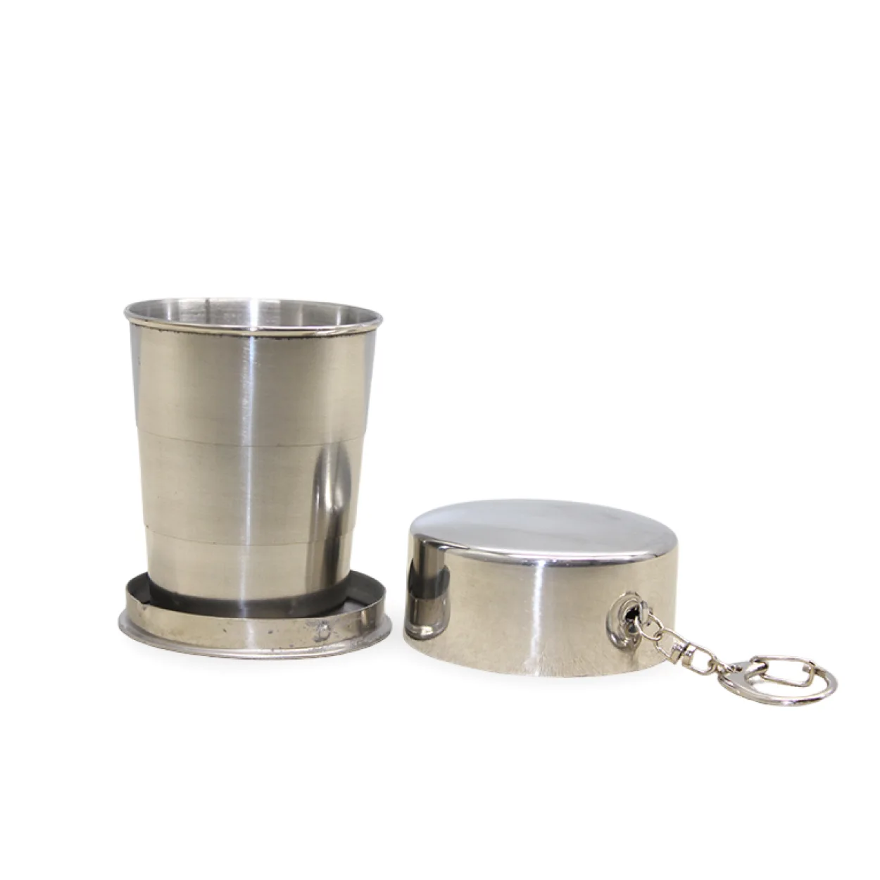Katlanabilir Paslanmaz Çelik Shot Bardağı Anahtarlıklı Kılıflı Cep Seyahat Kupası