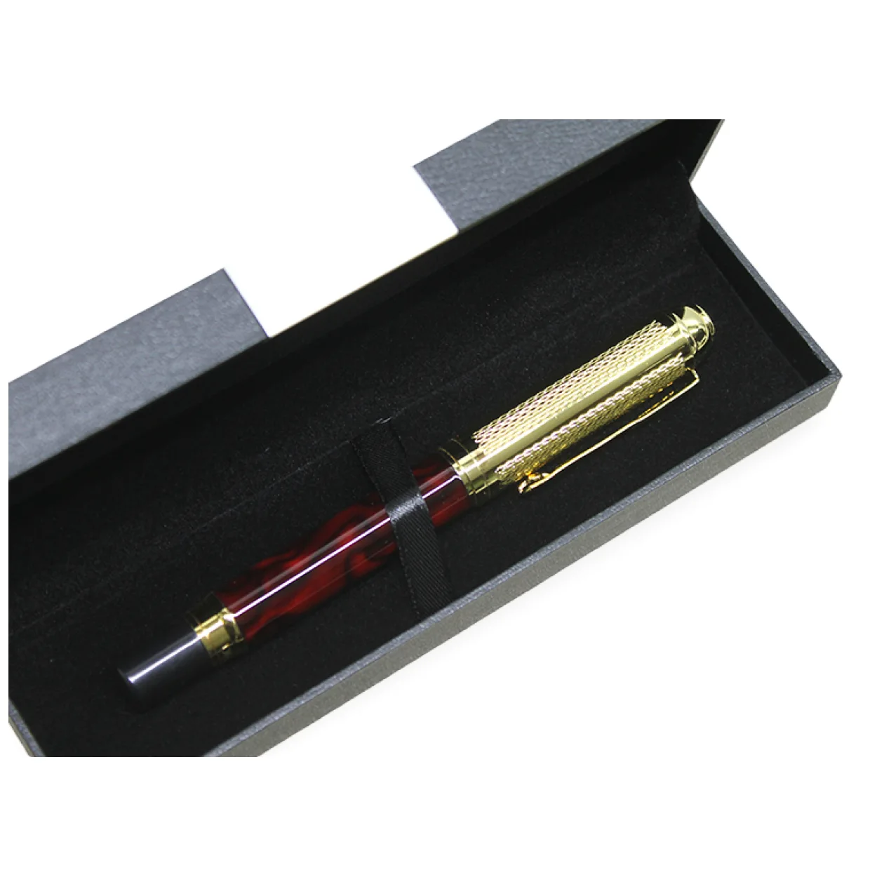 Kırmızı Akrilik Gövdeli, Altın Detaylı Lüks Tekli Tükenmez Kalem – Özel Hediye Kutulu Şık Tasarım