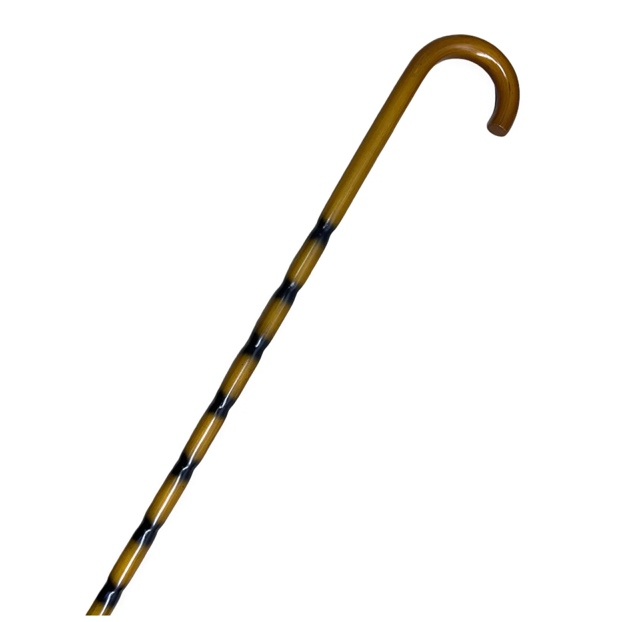 El Yapımı Zarif Tasarım: Gövdesindeki siyah ve sıcak ahşap tonlarının ritmik ve dalgalı geçişleri, bastona benzersiz ve göz alıcı bir estetik katar. Her bir detay özenle işlenmiştir.