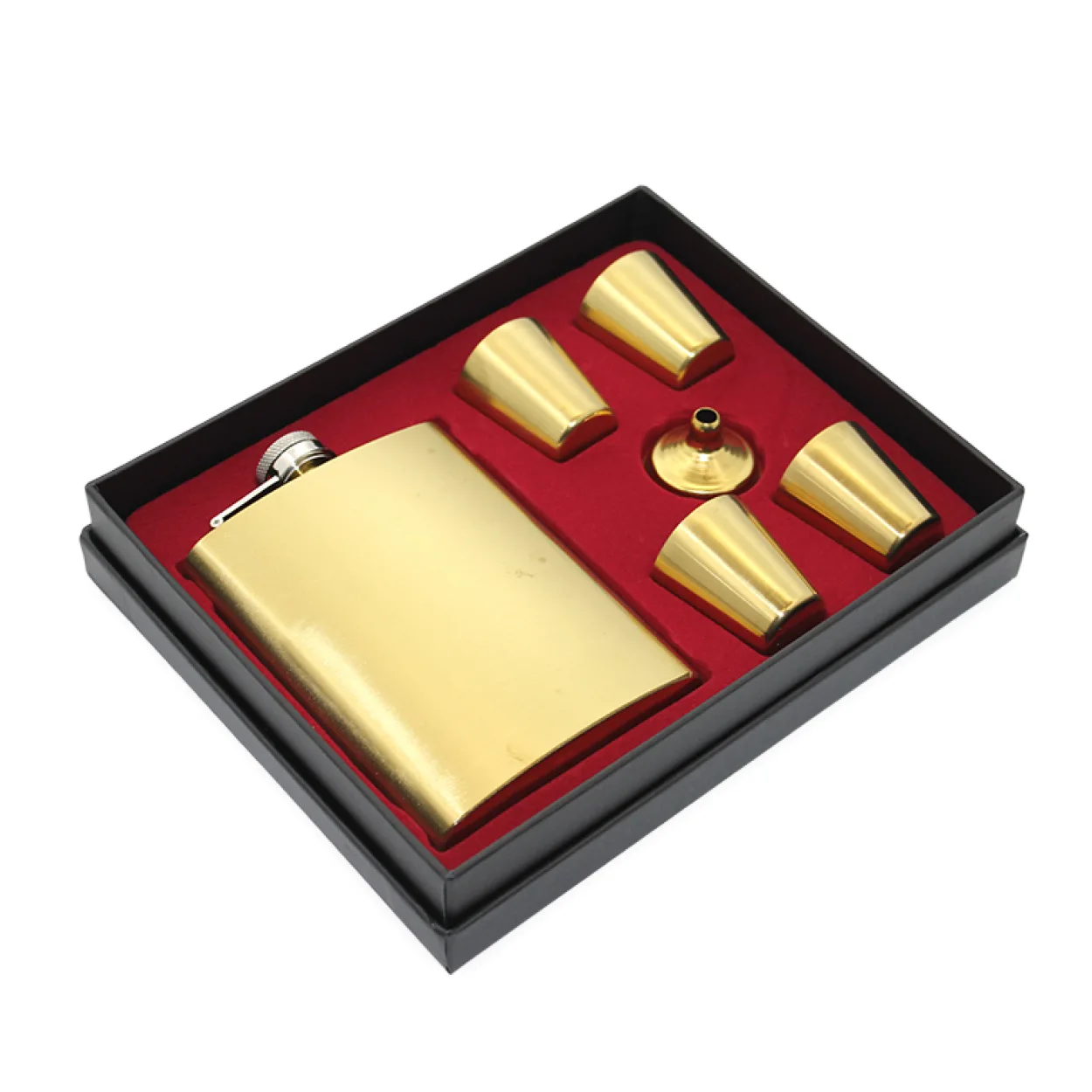 Lüks Gold Paslanmaz Çelik Matara Seti 4 Shot Bardak ve Huni ile Özel Tasarım Hediye