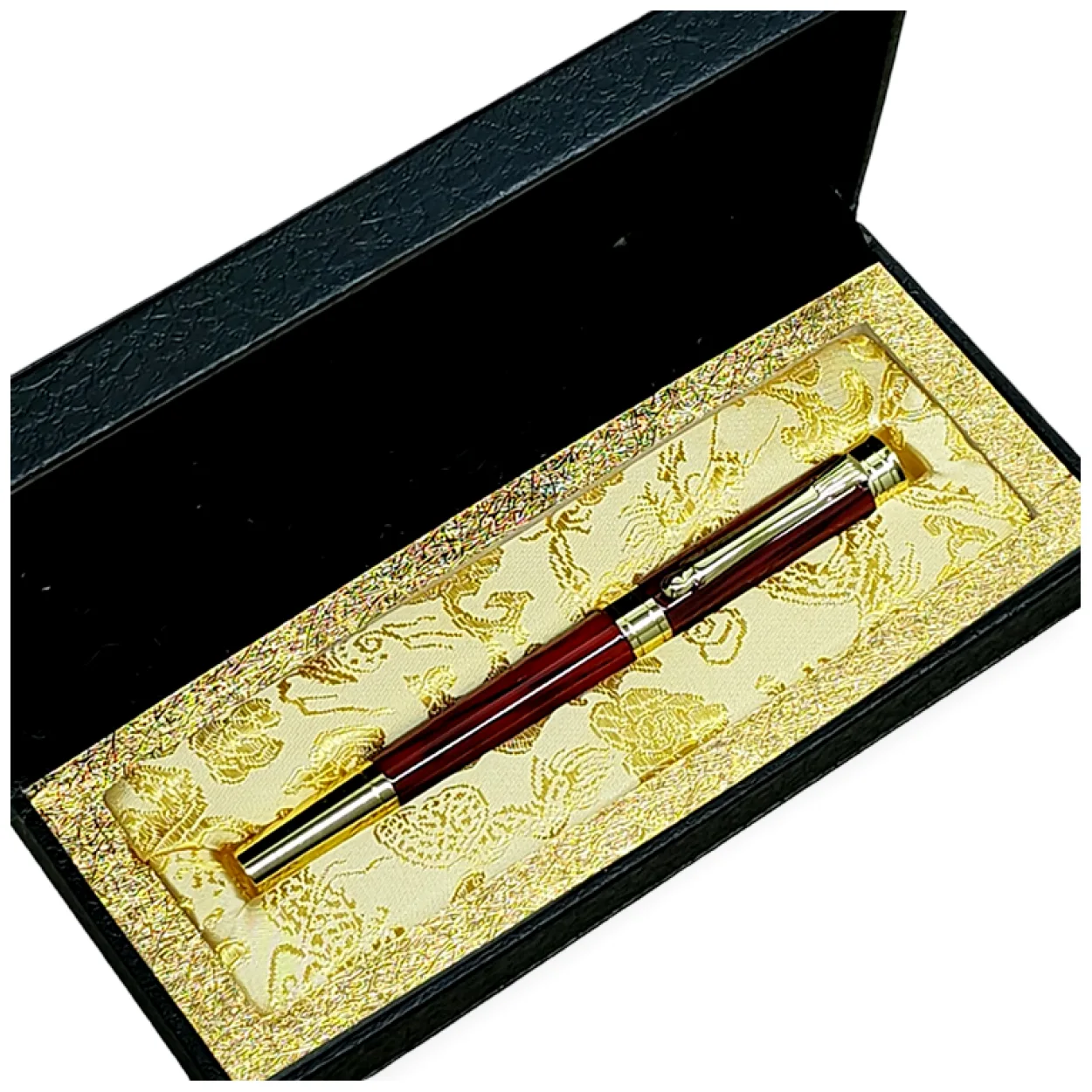 Lüks Kırmızı Altın Detaylı Özel Tasarım Kutulu Tükenmez Kalem