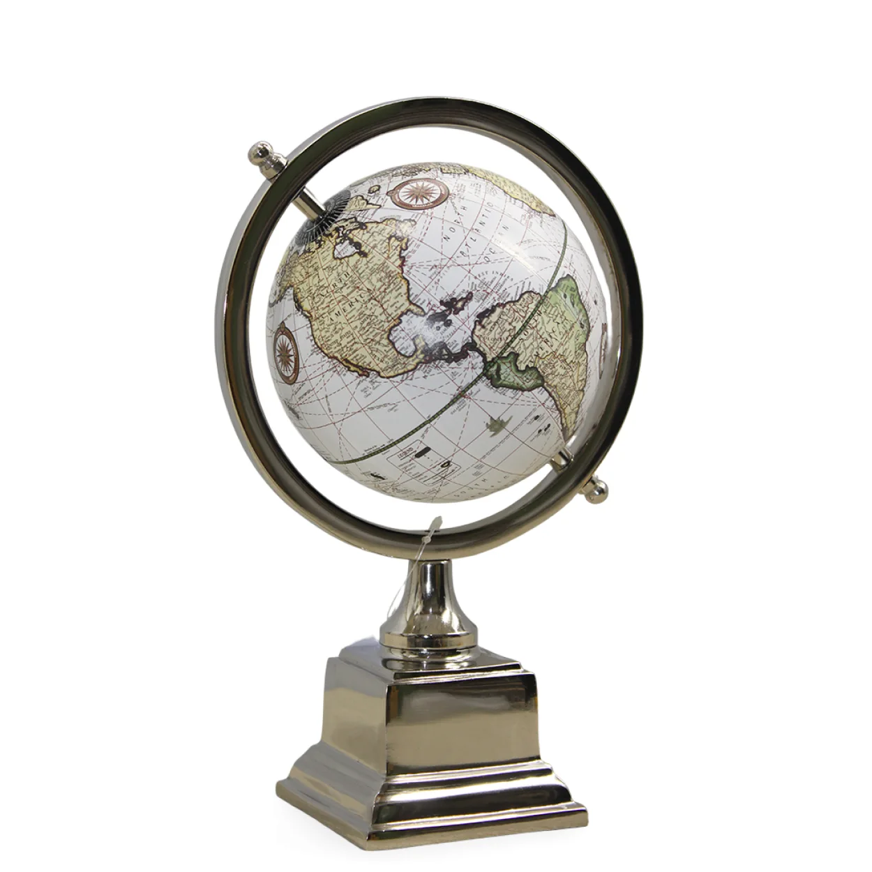 Ev ve ofis dekorasyonunuza sofistike bir dokunuş katmak isteyenler için tasarlanmış bu antik görünümlü dekoratif dünya küresi, estetik ve bilgi birikimini bir araya getiriyor. Parlak nikel kaplama metal standı ve ayaklığı ile bulunduğu her ortama çağdaş bir şıklık katarak dikkatleri üzerine çeker. Detaylı haritalandırması ve vintage renk tonlarıyla geçmişin büyüleyici ruhunu günümüze taşıyan bu küre, aynı zamanda coğrafyaya olan merakınızı da besleyecek.