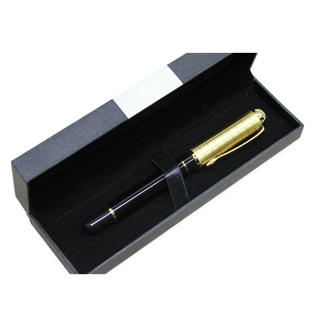 Lüks Siyah Altın Kapaklı Izgara Desenli Tükenmez Kalem Özel Hediye Kutulu