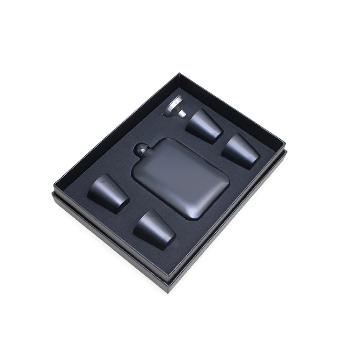 - Eksiksiz Set: Bir adet cep matarası, dört adet uyumlu shot bardağı ve pratik dolum için bir adet mini huni ile birlikte gelir. Tüm parçalar, özel olarak tasarlanmış siyah hediye kutusunda düzenli bir şekilde yerleştirilmiştir.