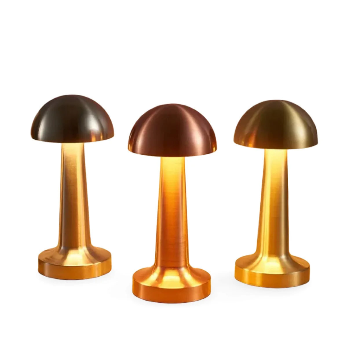 Ev ve ofis dekorasyonunuza modern bir dokunuş katacak, şık ve fonksiyonel Masa Üstü Dokunmatik Ledli Lamba ile tanışın. Mantar formlu eşsiz tasarımı ve farklı metalik renk seçenekleri (görseldeki gümüş, bronz ve altın tonları ürünün seçeneklerini yansıtır) sayesinde her ortama kolayca uyum sağlar. Bu özel lamba, sadece bir aydınlatma aracı değil, aynı zamanda yaşam alanınıza zarafet katan bir dekoratif objedir.