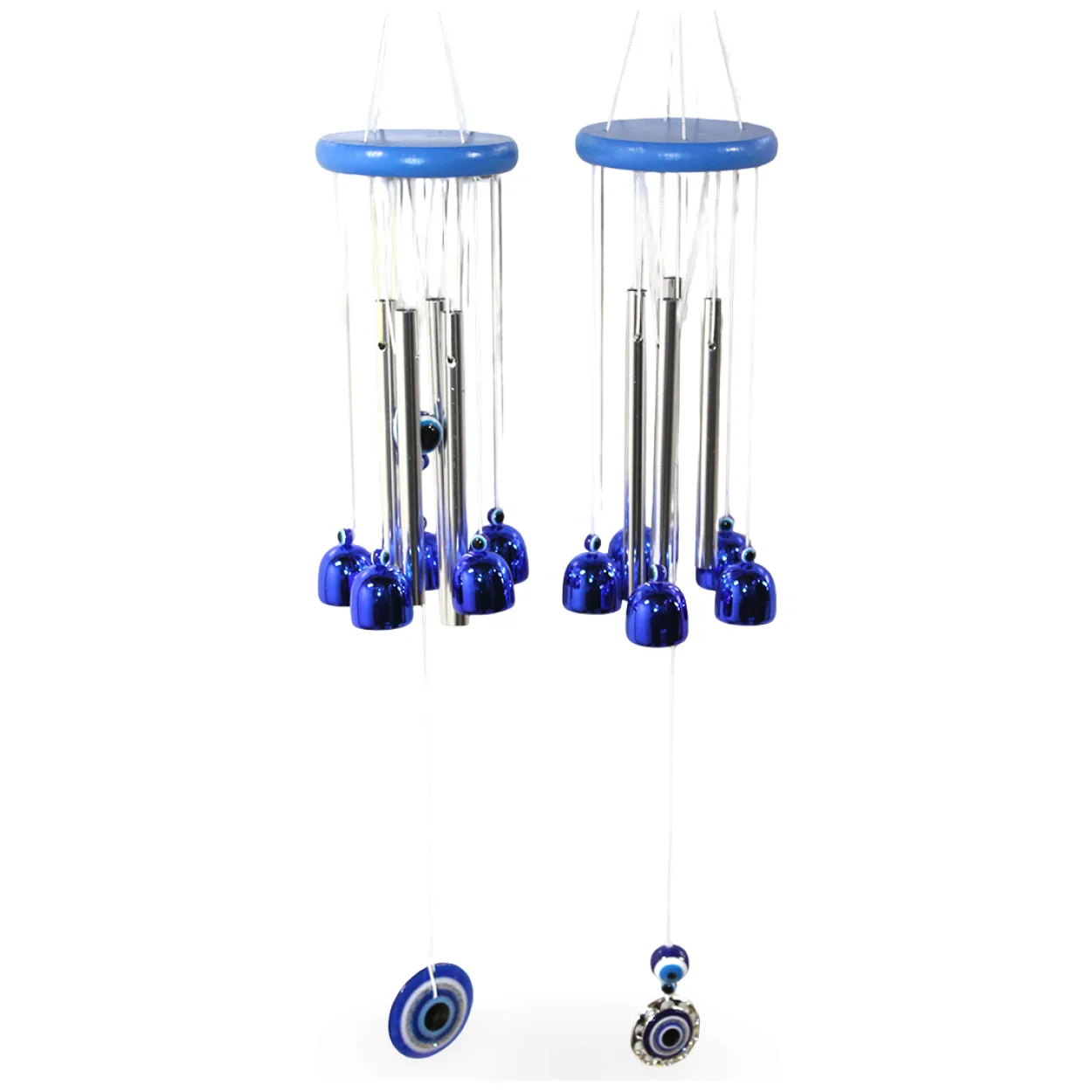 Modern Mavi Nazar Boncuklu Metal Rüzgar Çanı | Ev ve Bahçe Dekorasyonu için Uğur Getiren Rüzgar Çanı