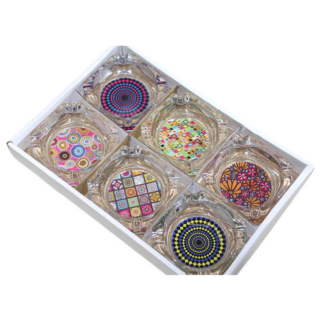 Modern Sanatsal Desenli Şeffaf Cam Küllük | Şık Ev ve Ofis Dekorasyonu İçin