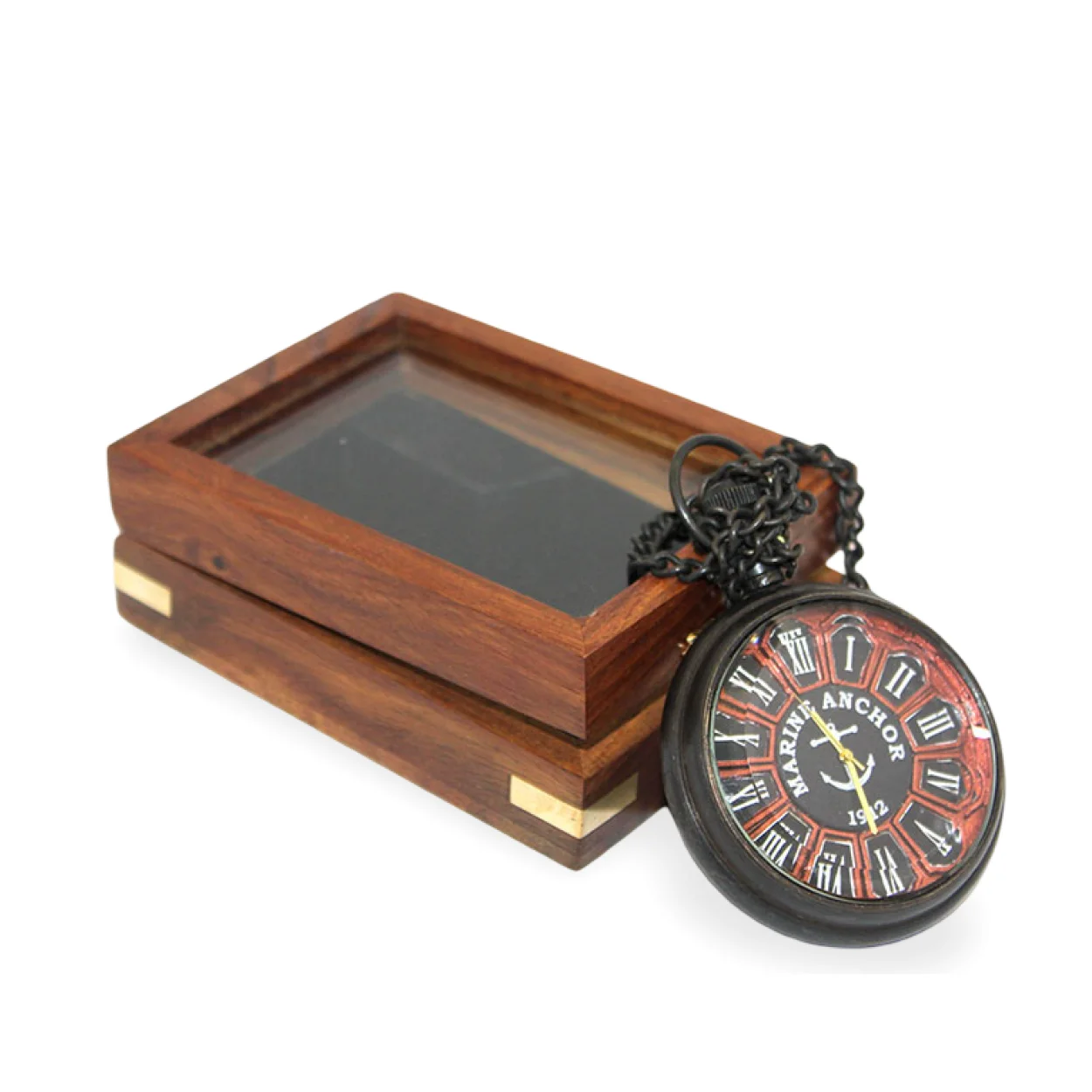 Nostaljik Denizci Temalı Ahşap Kutulu Köstekli Cep Saati | Vintage Çapa Tasarım Özel Hediye