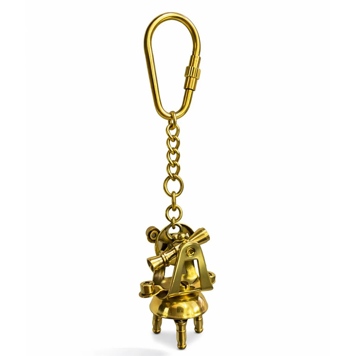 Nostaljik Pirinç Mini Teodolit Anahtarlık - Antik Görünümlü Denizci Temalı Hediyelik