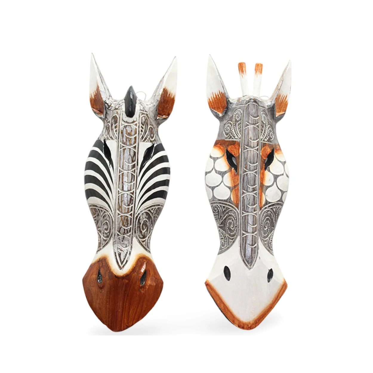 Evinizin veya ofisinizin atmosferine egzotik bir dokunuş katmaya hazır mısınız? Afrika'nın mistik ruhunu yansıtan bu el oyması ahşap duvar maskeleri, otantik zanaatkarlığın ve kültürel mirasın büyüleyici bir yansımasıdır. Her bir maske, usta eller tarafından özenle şekillendirilmiş, doğal ahşabın sıcaklığını ve detaylı işçiliğin inceliğini bir araya getiriyor. Görselde gördüğünüz zebra ve zürafa gibi hayvan temalı desenlerle sunulan bu dekoratif objeler, yaşam alanlarınıza benzersiz bir karakter ve derinlik katmak için tasarlandı. Misafirlerinizin dikkatini çekecek, sohbetlere ilham verecek ve mekanınıza Afrika savanalarının ruhunu taşıyacak çarpıcı bir sanat eseriyle duvarlarınızı canlandırın.
