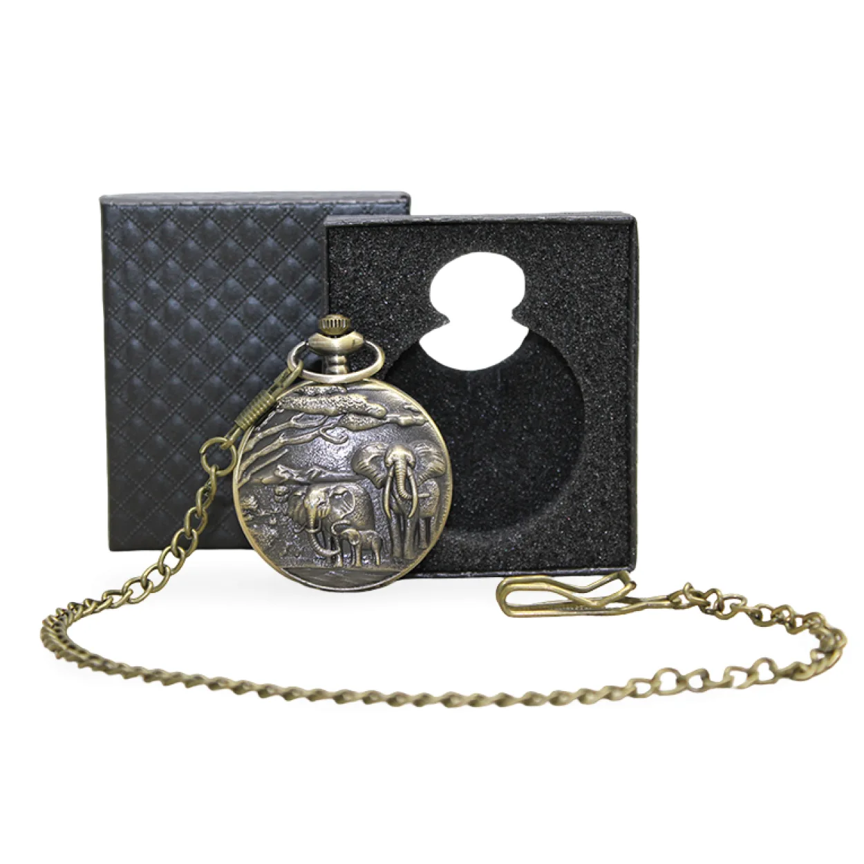 Özel Tasarım Filli Antik Bronz Köstekli Cep Saati - Vintage Hediye Kutulu Kolleksiyonluk Saat
