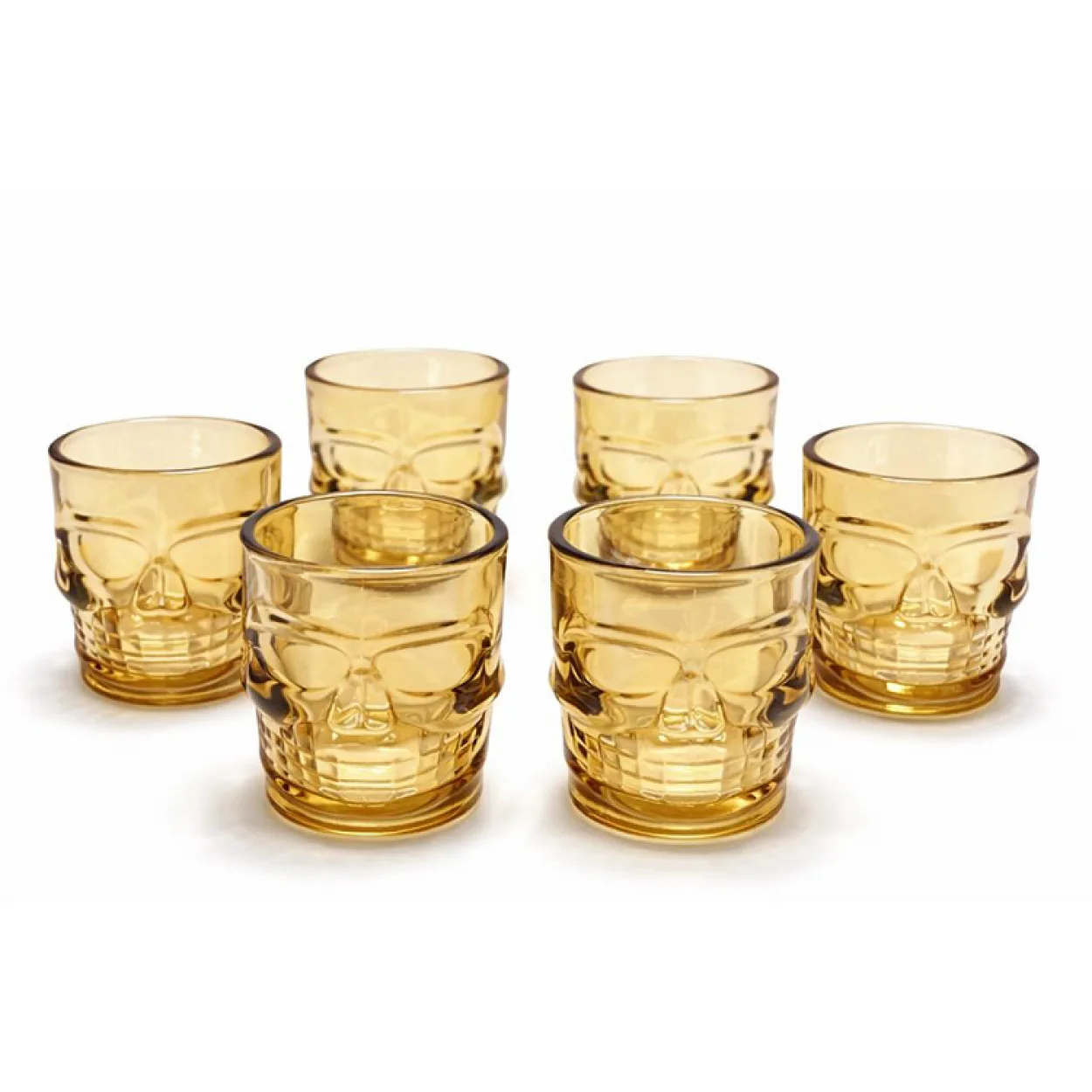 Özel anlarınızı veya partilerinizi unutulmaz kılacak, gotik esintili bu amber renkli cam shot bardağı ile tanışın. Her bir bardak, detaylı kurukafa deseniyle sıradanlığı geride bırakarak mistik ve çarpıcı bir hava katıyor. Yüksek kaliteli camdan üretilen bu şık bardaklar, dayanıklılığı ve estetiği bir araya getiriyor.