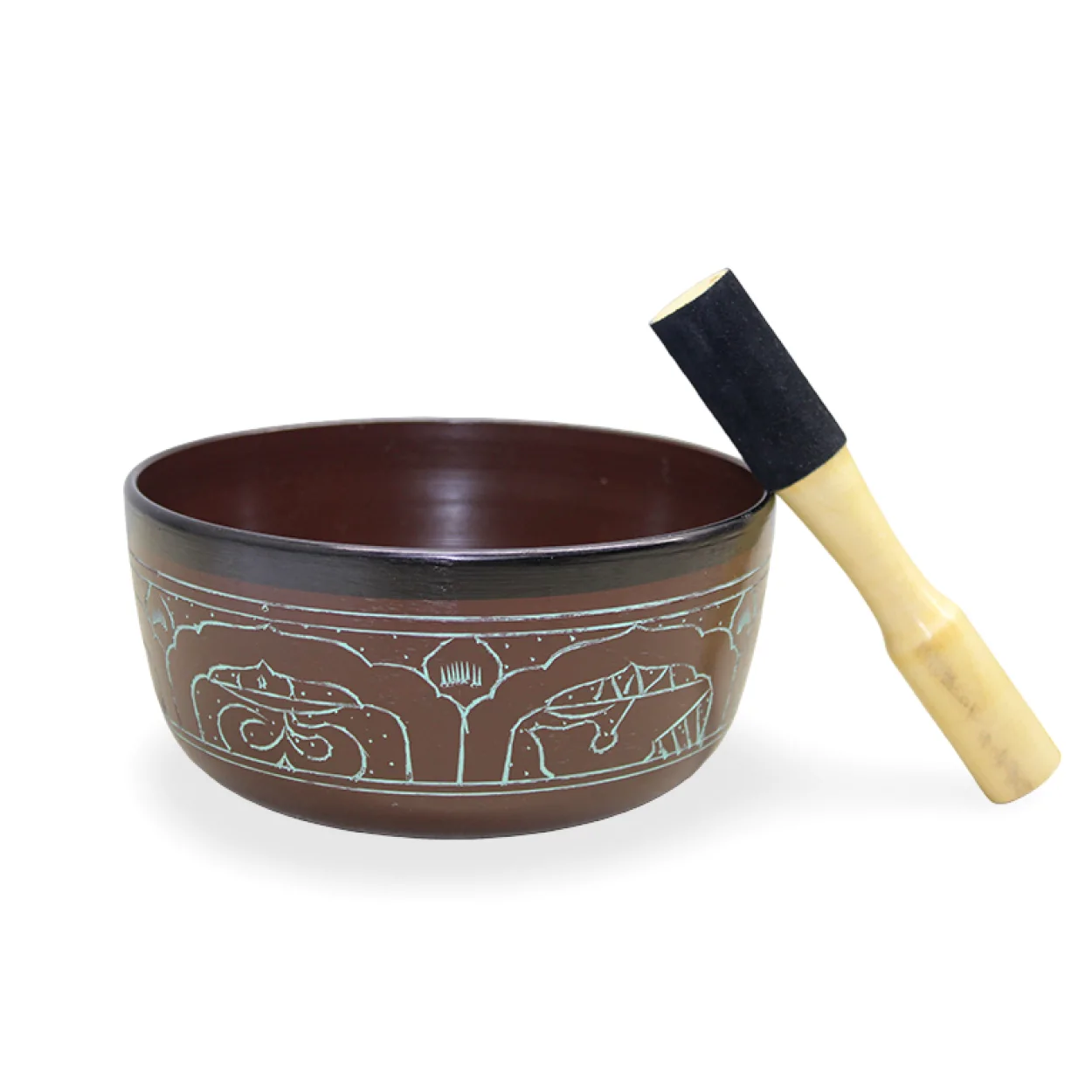 Malzeme: Yüksek kaliteli pirinçten özenle el yapımı olarak üretilmiştir, bu sayede uzun ömürlü ve otantik bir deneyim sunar. Çanın kahverengi dış yüzeyi, zarif turkuaz kazıma desenler ve siyah bir bant ile süslenmiştir.