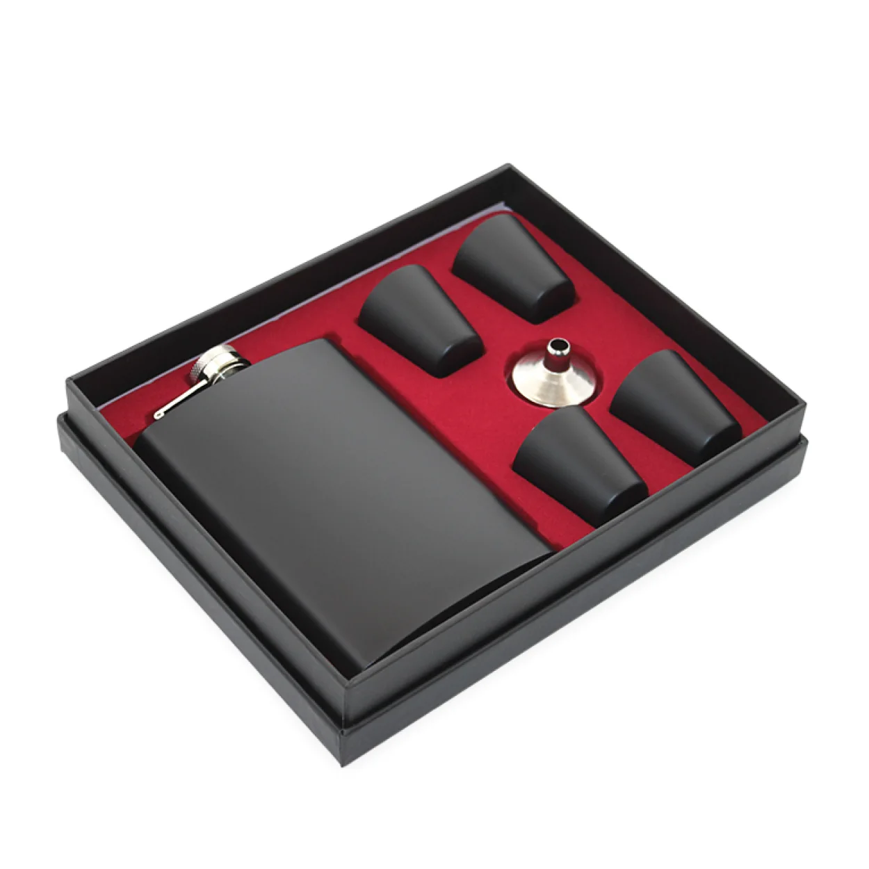 Premium Mat Siyah Paslanmaz Çelik 9 Oz Matara ve 4 Adet Shot Bardak Seti - Özel Hediye