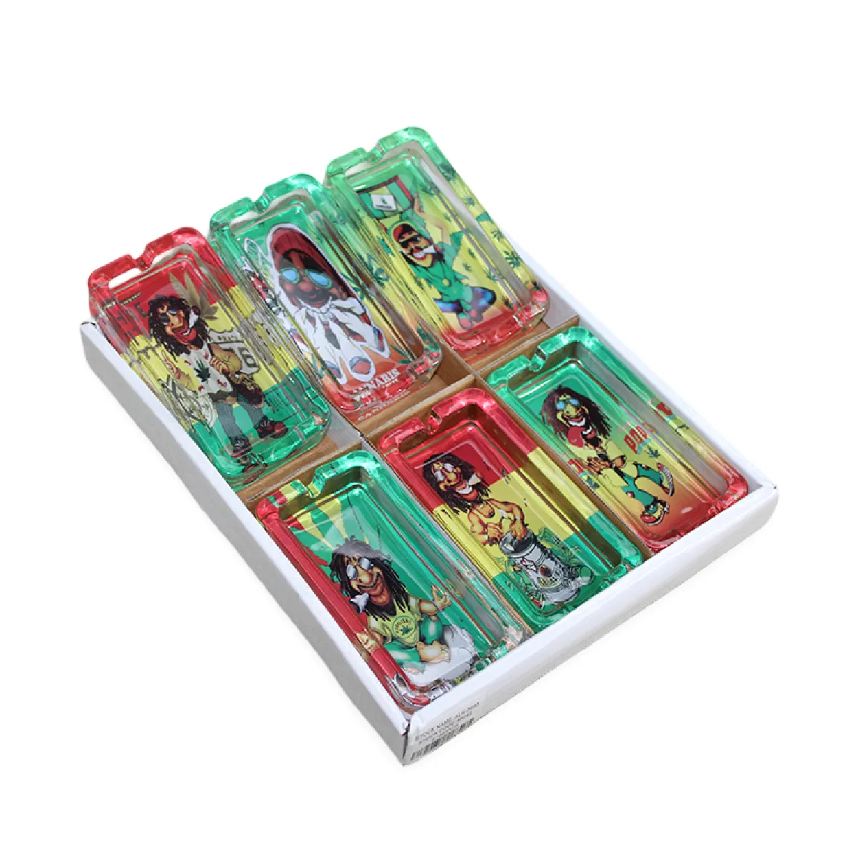 Evinize veya ofisinize neşeli ve renkli bir hava katmak için tasarlanmış bu benzersiz cam küllük ile tarzınızı yansıtın. Canlı Rasta renk paleti ve her biri özenle işlenmiş eğlenceli çizgi film karakteri figürleriyle, sıradan bir küllükten çok daha fazlasını sunar. Her bir küllük, pozitif enerji yayan ve dikkat çeken özel bir tasarıma sahiptir.