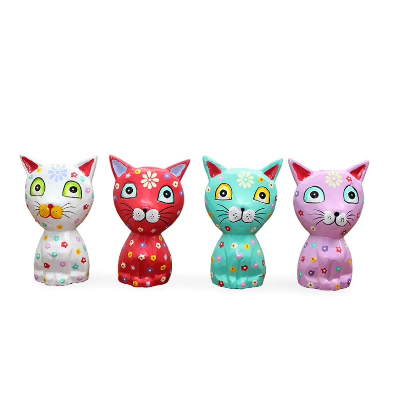Rengarenk El Yapımı Ahşap Kedi Biblo: Sevimli Dekoratif Bir Figür ile Evinizi Canlandırın