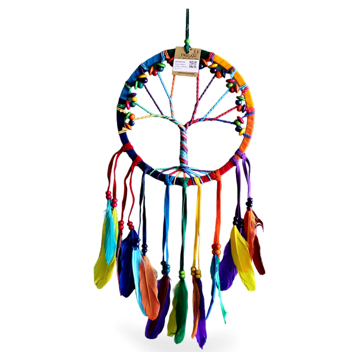 Renkli Hayat Ağacı Temalı El Yapımı Büyük Boy Rüya Kapanı