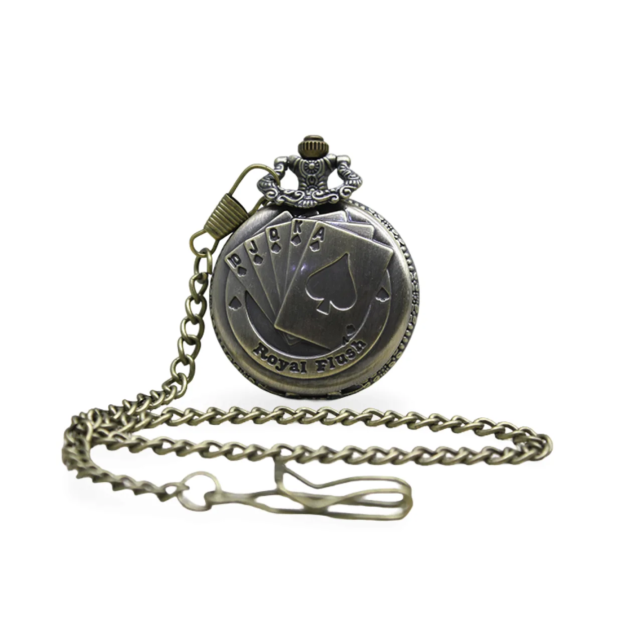 Royal Flush Poker Temalı Antik Bronz Köstekli Saat - Şans ve Stil Bir Arada