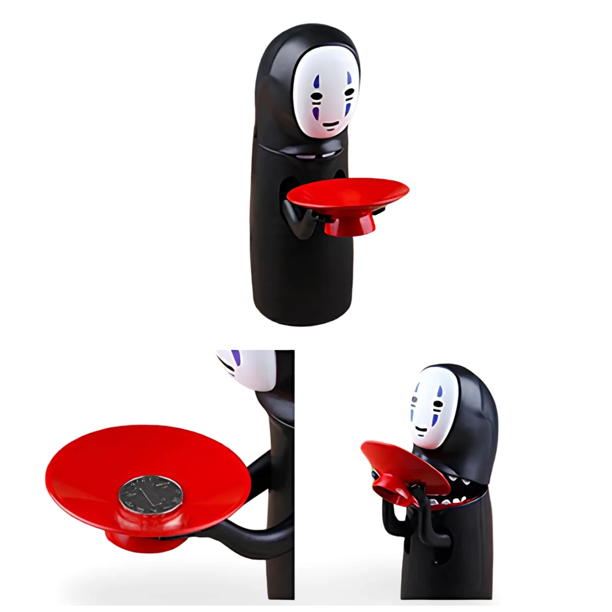 Ruhların Kaçışı filminden ilham alan eşsiz Kaonashi (Yüzsüz) karakteri şimdi birikimlerinize eğlenceli bir boyut katıyor! Bu elektronik sesli kumbara, sadece bir para saklama aracı değil, aynı zamanda ev veya ofis dekorasyonunuza fantastik bir dokunuş katacak dikkat çekici bir objedir.