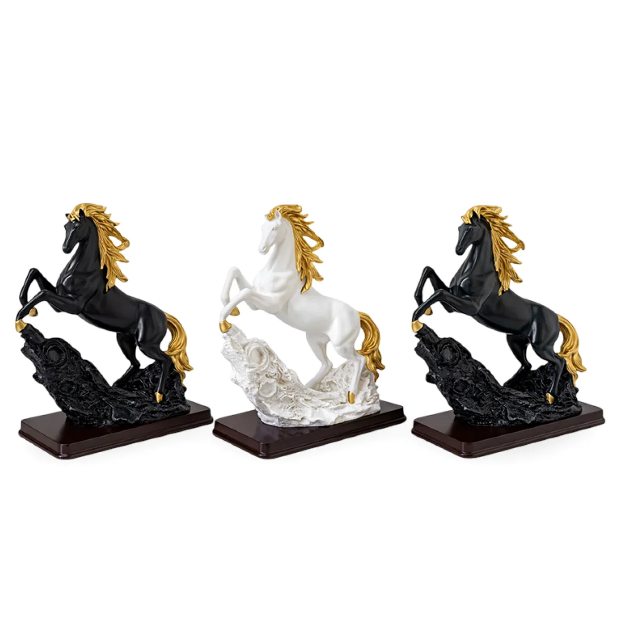 - Renk Seçenekleri: Ürün, zevkinize ve dekorasyonunuza uygun olarak siyah veya beyaz at figürü seçenekleriyle sunulmaktadır. Her iki renk de altın detaylarla zenginleştirilmiştir, bu da onlara sofistike bir hava verir. Lütfen dikkat: Görseldeki farklı renkler, ürünün mevcut seçeneklerini göstermekte olup, ürün tek adet olarak satılmaktadır.