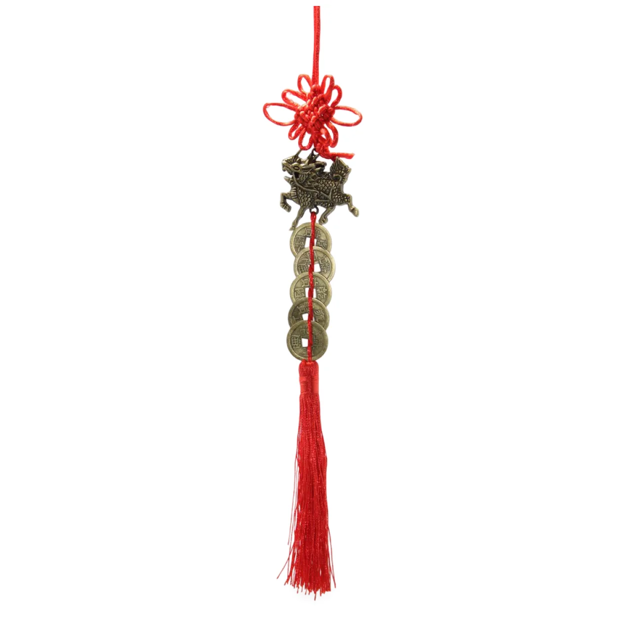 Şans ve Bereket Getiren Çin Feng Shui Metal Askılık Uğur Parası ve Kirin Figürlü Dekorasyon