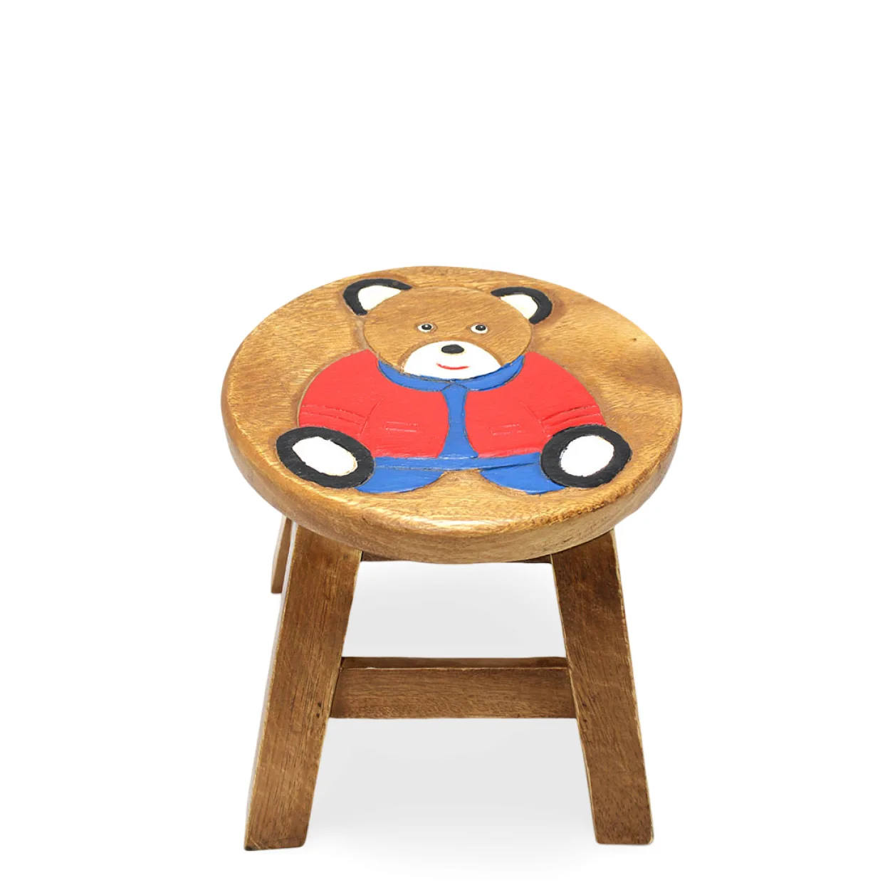 Sevimli Ayıcık Figürlü Ahşap Çocuk Taburesi - Büyük Boy Çocuk Odası Dekoru