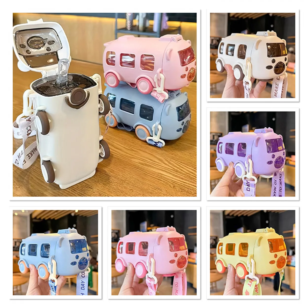 Sevimli Otobüs Tasarımlı Pipetli Çocuk Su Matarası 500 ml