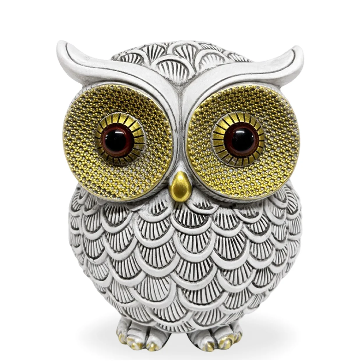 Şık Gri Altın Detaylı Polyester Baykuş Dekoratif Figür: Modern Ev ve Ofis Objesi