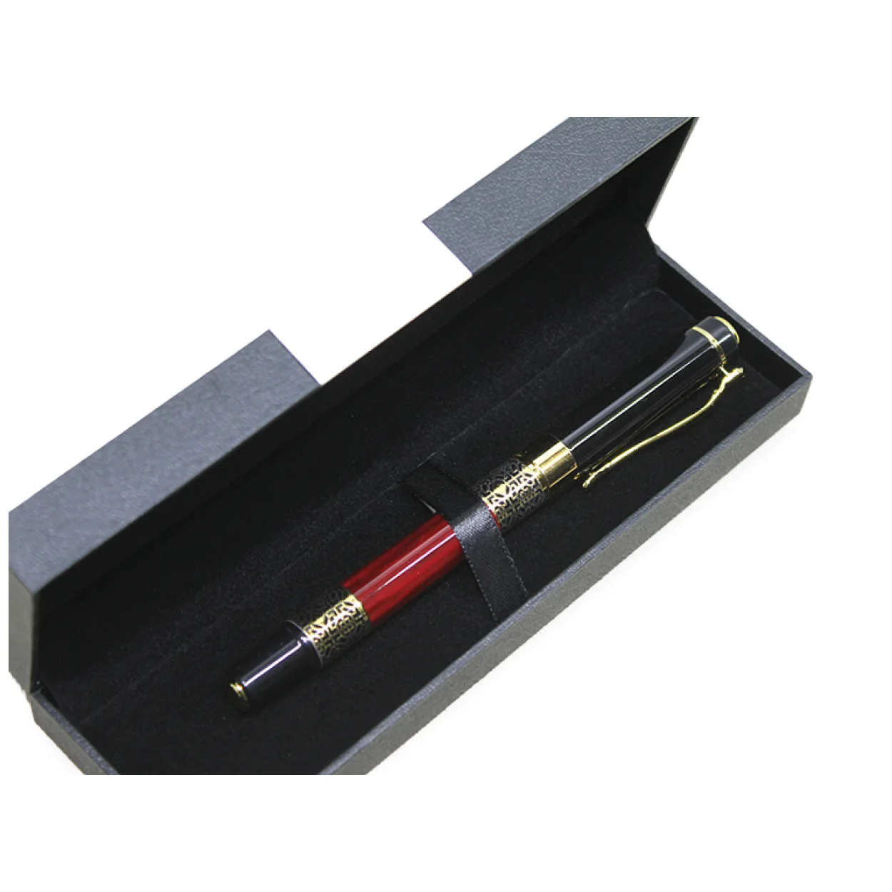 Şık Kırmızı ve Siyah Gold Detaylı Tekli Tükenmez Kalem – Özel Tasarım Hediye Kutulu Lüks Yazı Aracı