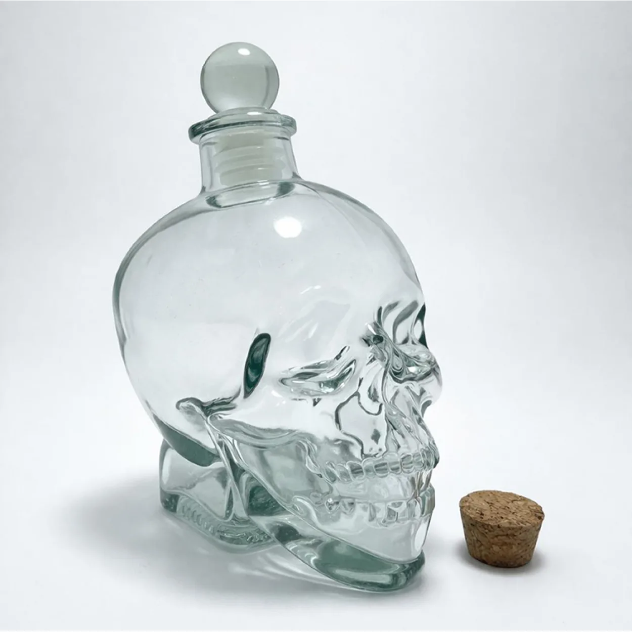 Şık ve Gizemli Cam Kurukafa Şişesi 14 cm – Ruhunuzu Yansıtan Dekoratif İçki Şişesi