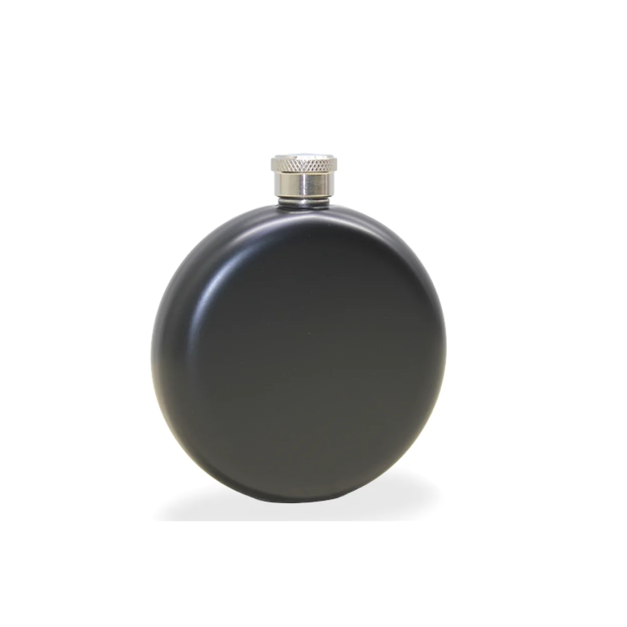 Şık ve Modern Mat Siyah Yuvarlak Cep Matarası 5 Oz