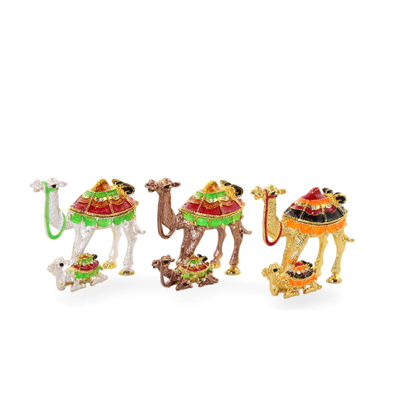 - Swaroski Taş Detayları: Develerin sırt ve boyun kısımları, ışıltılı Swaroski taşlarla süslenerek lüks bir görünüm kazandırılmıştır.