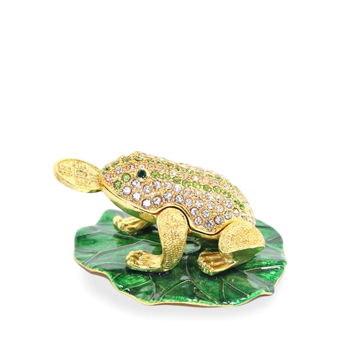 - Parıldayan Swaroski Taşlar: Kurbağanın tüm vücudu, yeşil ve berrak Swaroski kristal taşlarla bezenmiştir. Bu taşlar, ışığı mükemmel şekilde yansıtarak göz kamaştıran bir parlaklık sunar ve bibloya eşsiz bir zarafet katar.