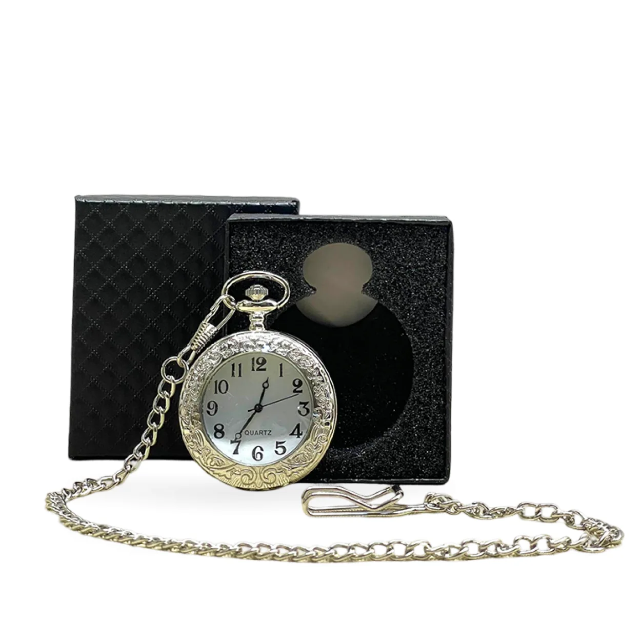 Vintage Gümüş Kaplama Oymalı Köstekli Cep Saati | Özel Hediye Kutulu Şık Tasarım