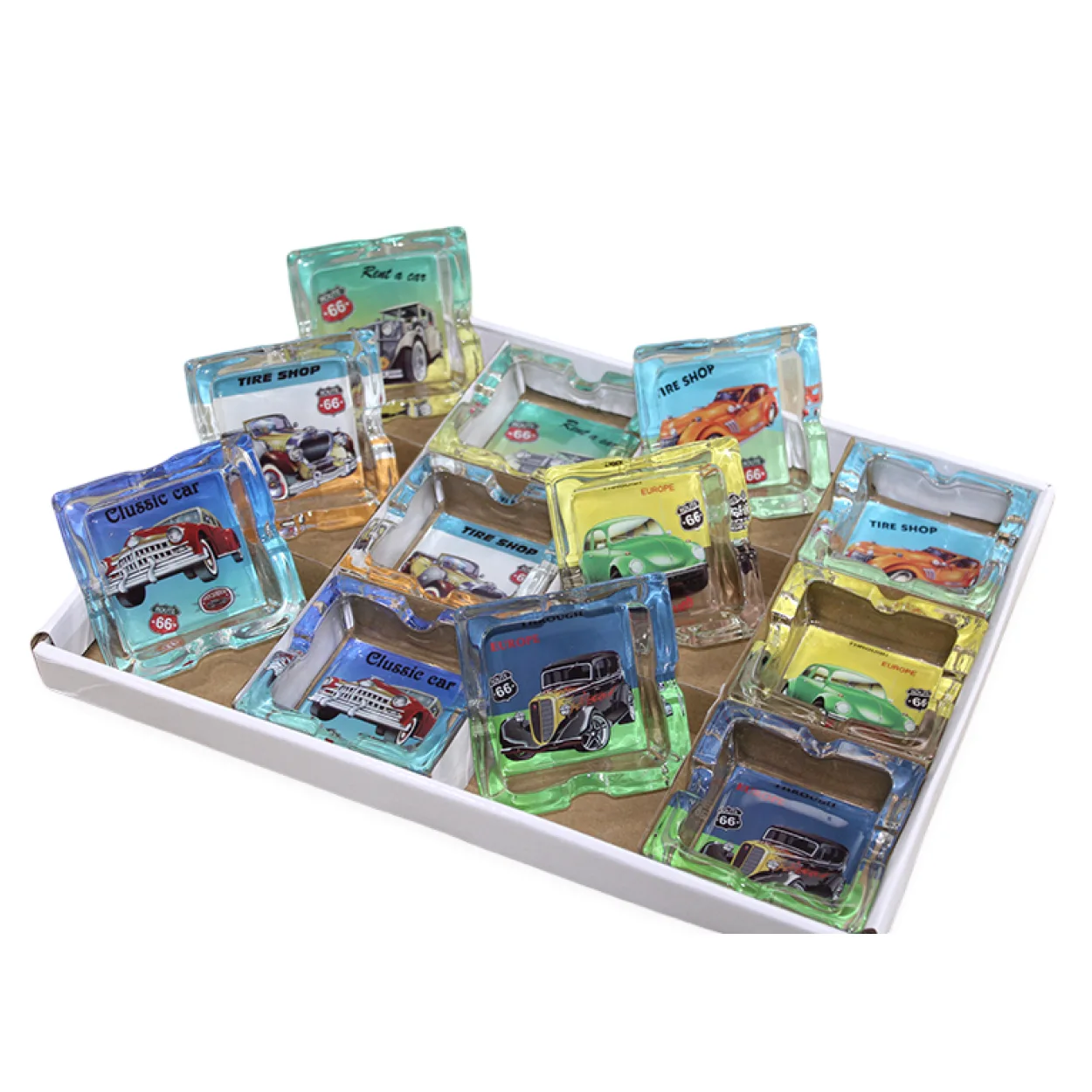 Bu eşsiz küllük, sadece işlevsel bir ürün olmakla kalmayıp, aynı zamanda dekoratif bir obje olarak da ön plana çıkıyor. Farklı klasik araba modelleri ve "Classic car", "Tire Shop", "Rent a car" gibi Amerikan yollarının ikonik ruhunu yansıtan yazılarıyla her biri ayrı bir hikaye anlatan çeşitler bulunmaktadır. Koleksiyonerler veya vintage tutkunları için ideal bir hediye alternatifi olan bu cam küllük, mekanlara karakter ve şıklık katıyor.