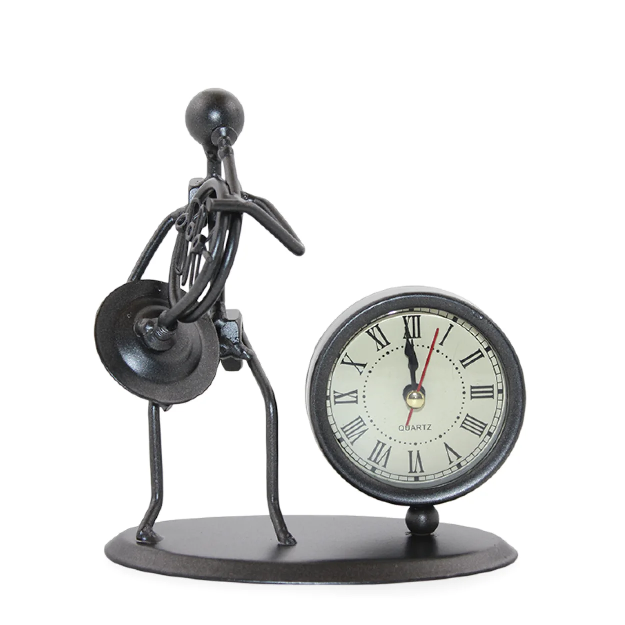 Vintage Metal Müzisyen Biblo Masa Saati | Sanatsal Dekoratif Ev Ofis Aksesuarı