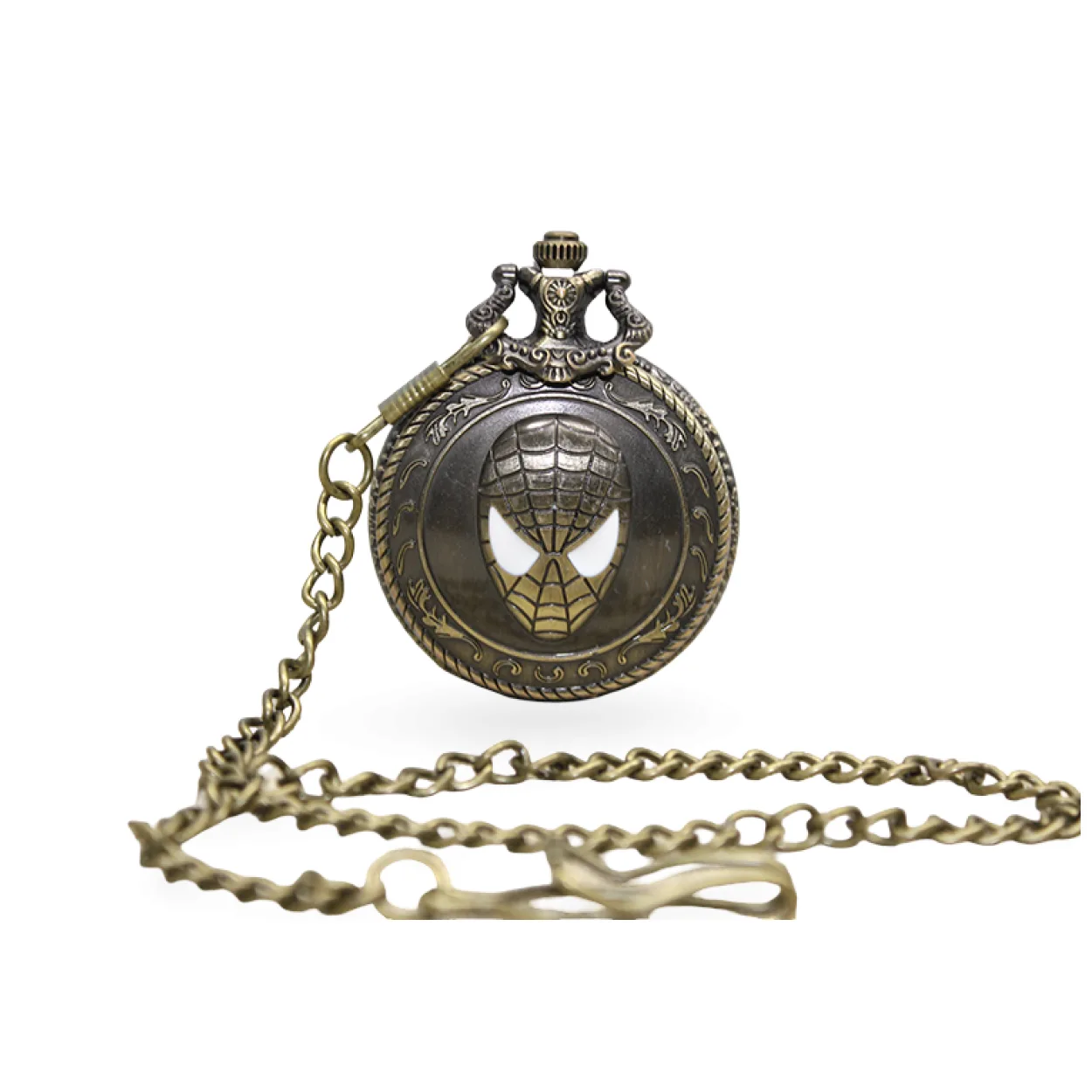 Vintage Örümcek Adam Köstekli Cep Saati - Antik Bronz Desenli Koleksiyonluk Saat