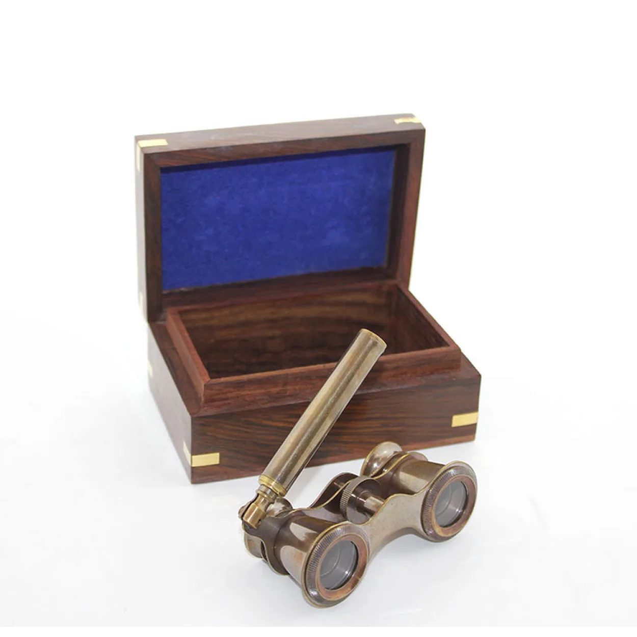 Vintage Stil Ahşap Kutulu Antik Pirinç Opera Dürbünü