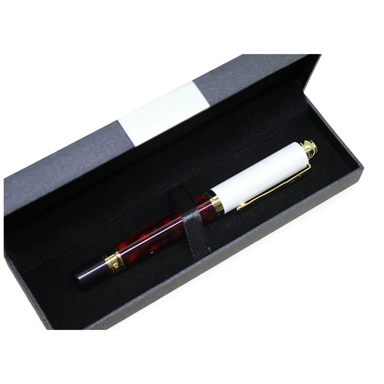 Zarif Beyaz Kapak Kırmızı Gövdeli Altın Detaylı Hediye Kutulu Şık Tekli Tükenmez Kalem