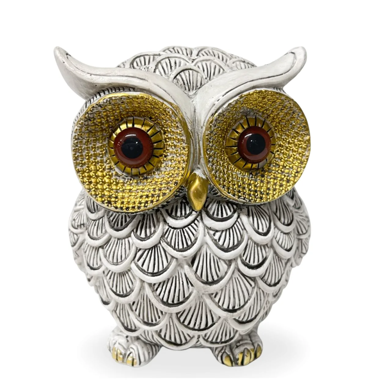 Zarif Beyaz Polyester Baykuş Biblo | Altın Göz Detaylı Modern Ev Ofis Dekoratif Figürü
