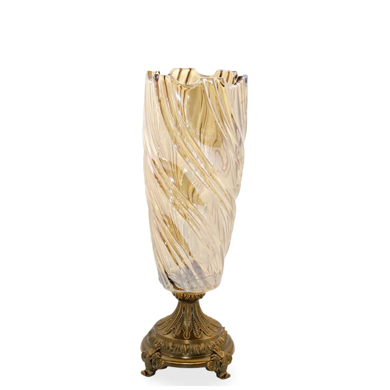 Zarif Burgu Desenli Amber Cam Şamdan Mumluk | Antik Bronz Ayaklı Ev Dekoru