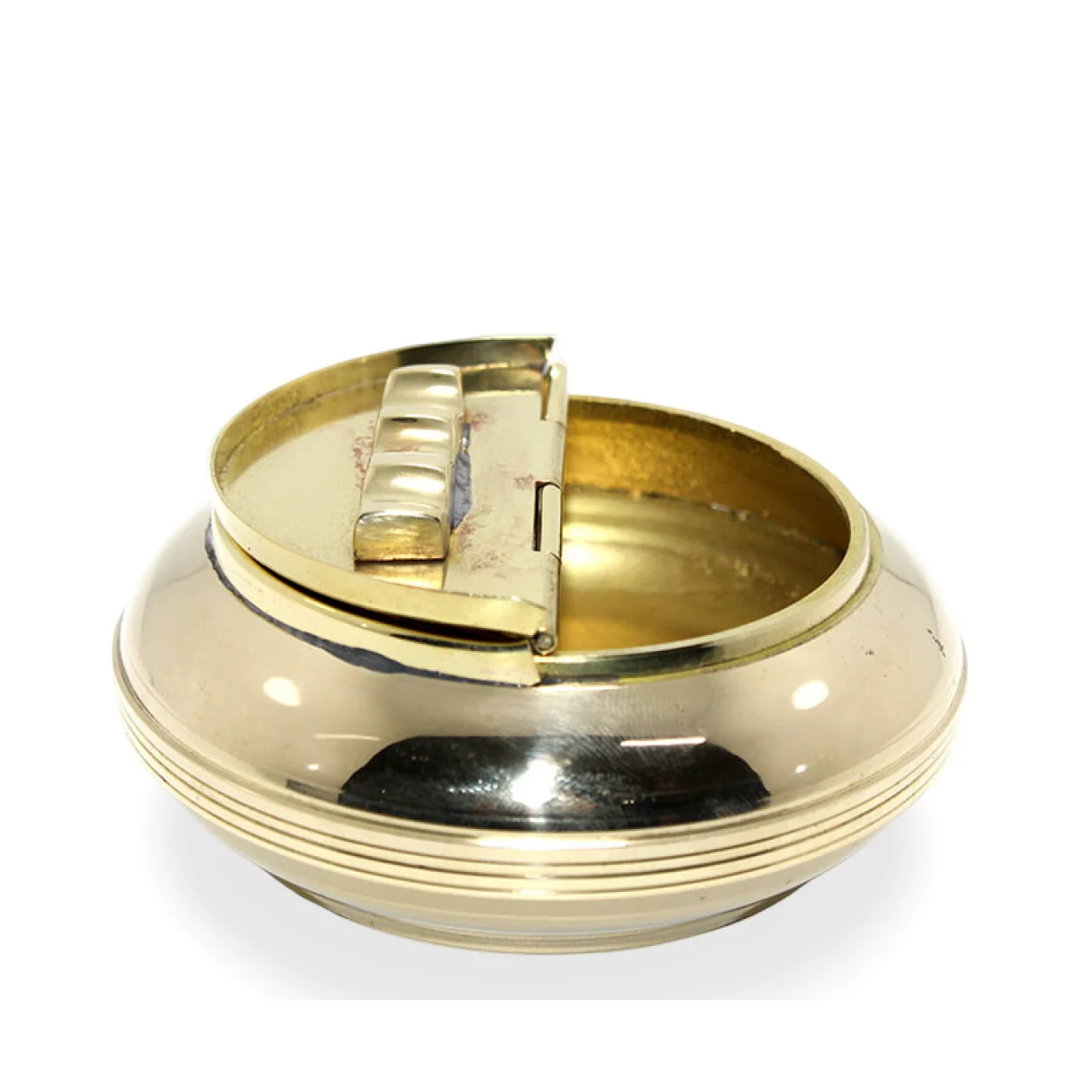 Bu pirinç küllük, adeta bir sanat eseri gibi, geleneksel malzeme olan pirincin sıcak ve asil duruşunu modern bir tasarımla harmanlar. Parlak yüzeyi, ışığı yansıtarak bulunduğu ortama zengin bir doku katarken, alt kısmındaki zarif çizgi detayları da estetik bütünlüğü pekiştirir. Küllüğün yarı açık görünen üst mekanizması, hem kullanım kolaylığı sunar hem de içindeki küllerin dışarıya dağılmasını engelleyerek hijyenik bir deneyim sağlar. Bu özellik, rüzgarlı ortamlarda dahi küllerin uçuşmasını önleyerek hem iç hem de dış mekan kullanımına uygunluğunu artırır.