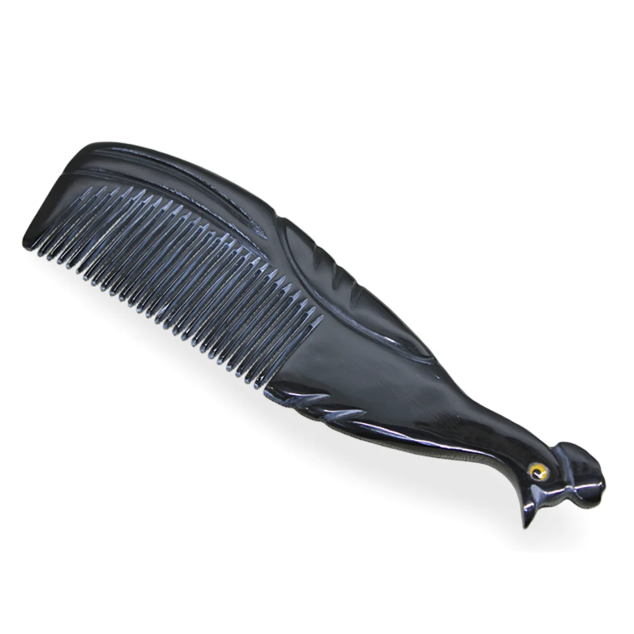 Benzersiz Tavuskuşu Tasarımı: Tarak sapı, zarafetin ve güzelliğin sembolü olan tavuskuşunun detaylı figürüyle süslenmiştir. Sarı göz detayı bu objeye canlılık katmaktadır.