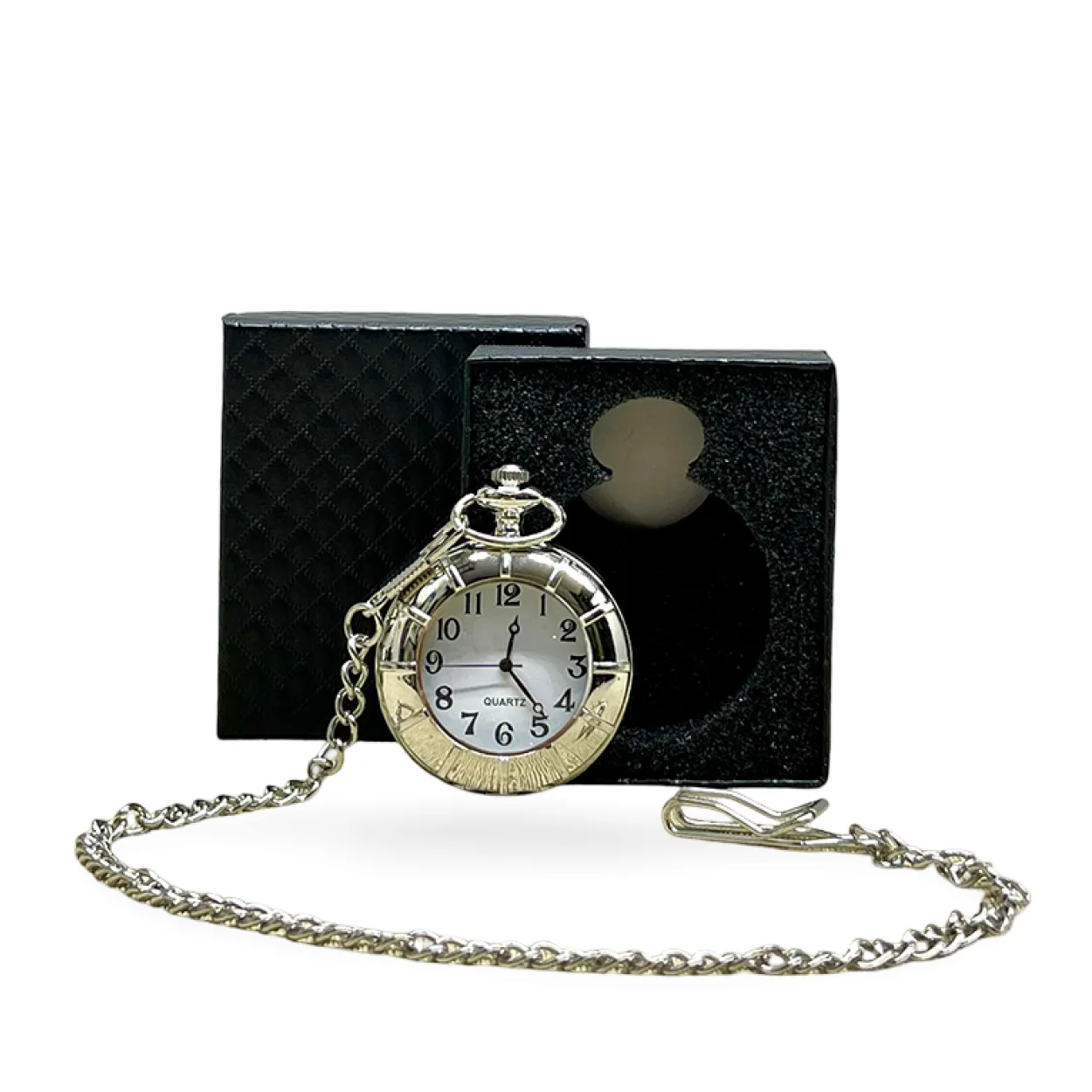 Zarif Gümüş Köstekli Cep Saati ve Özel Hediye Kutusu