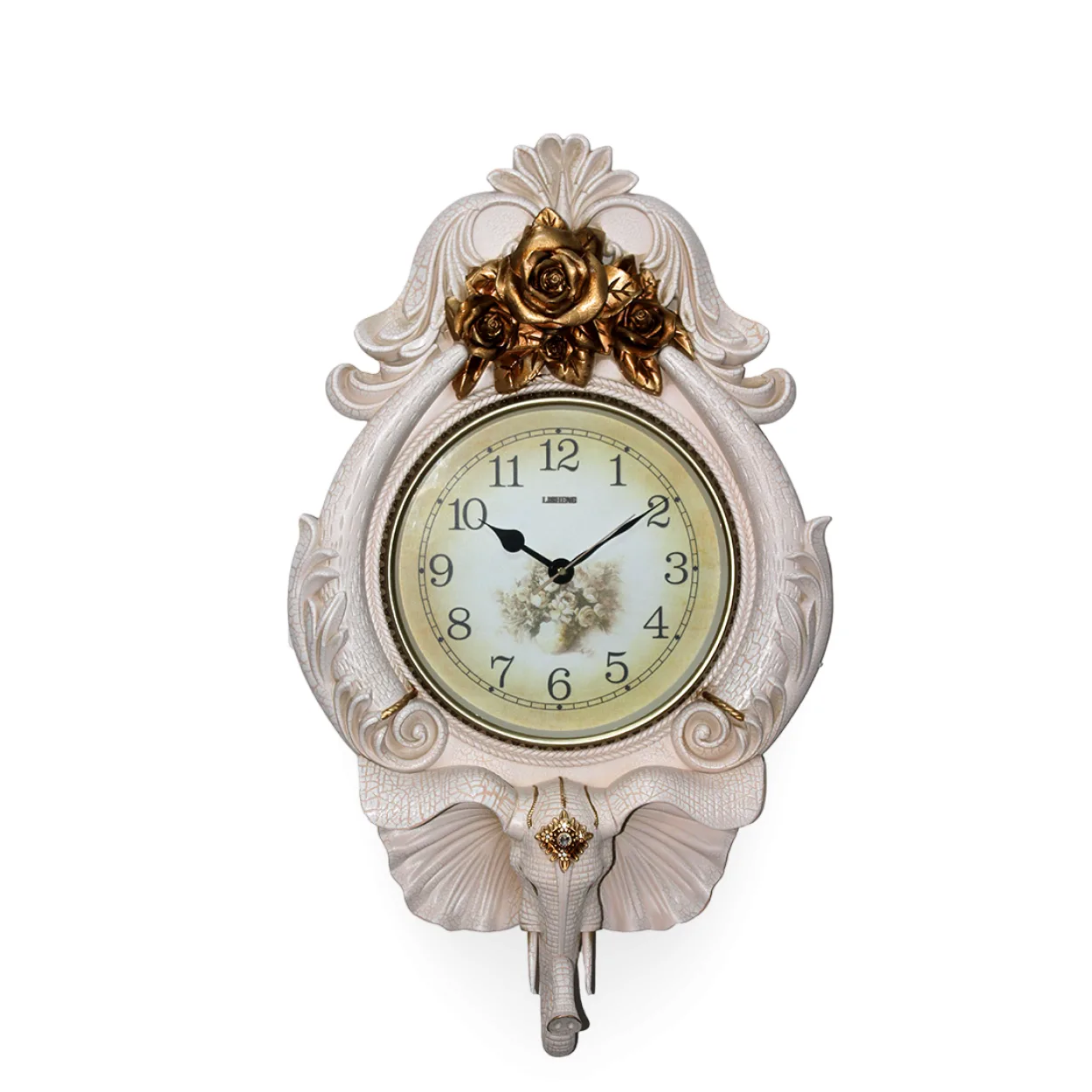 Zarif Lüks Fil Figürlü Altın Güllü Duvara Asmalı Vintage Dekoratif Duvar Saati