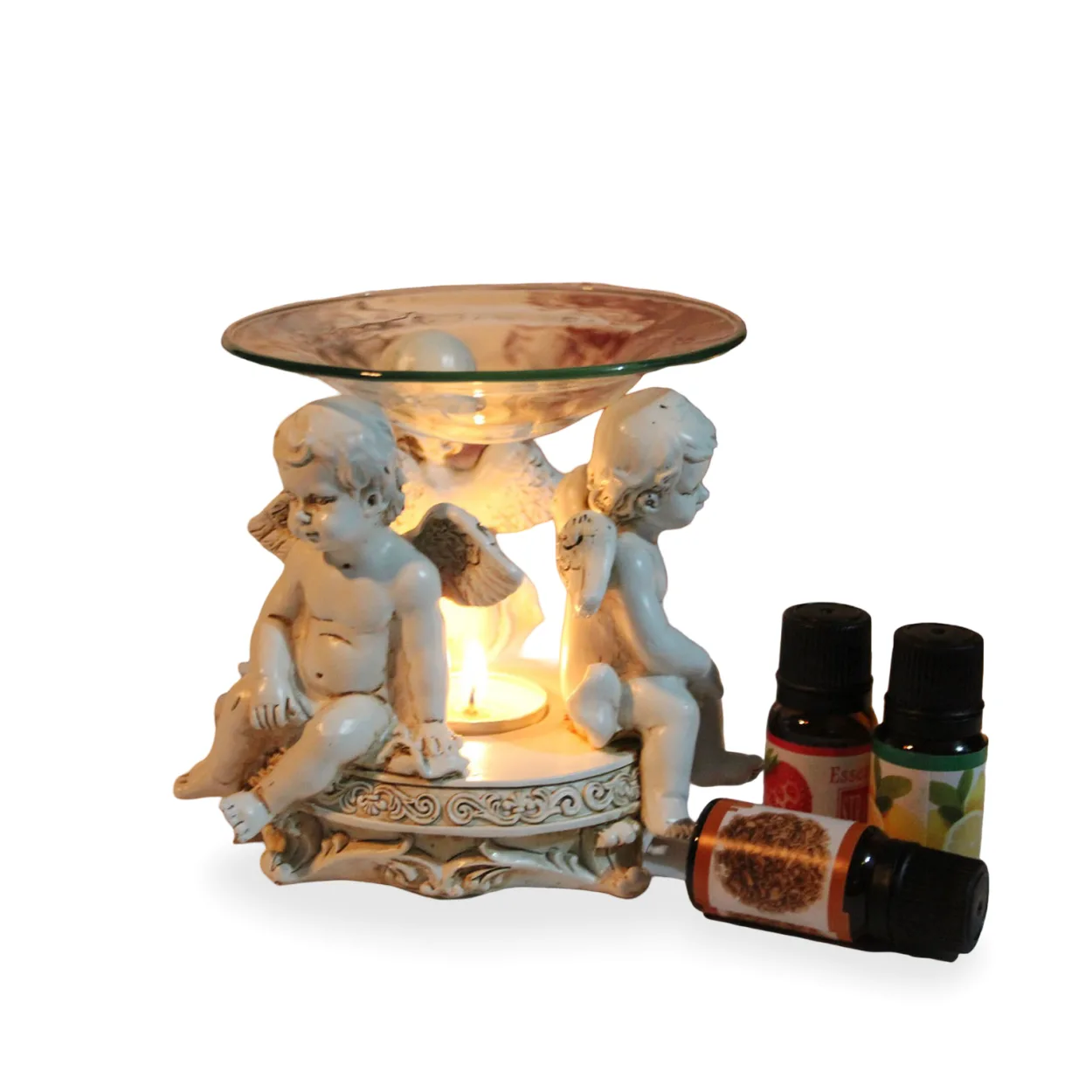 Bu özel buhurdanlık, 1. Derece Kaliteli Polyesterden üretilmiştir. Bu sayede uzun ömürlü kullanım imkanı sunarken, ince işçilikle detaylandırılmış melek bibloları, ürünün dekoratif değerini artırır. Orta kısmında yer alan mum haznesi, aydınlattığı alanı sıcak bir ışıkla doldururken, üst cam haznesi esansiyel yağların buharlaşarak ortama yayılmasını sağlar. Meleklerin dingin duruşu, bulunduğu her köşeye sakinlik ve dinginlik getirir. Ortam kokusu değiştirmek ve rahatlatıcı bir atmosfer yaratmak için idealdir.