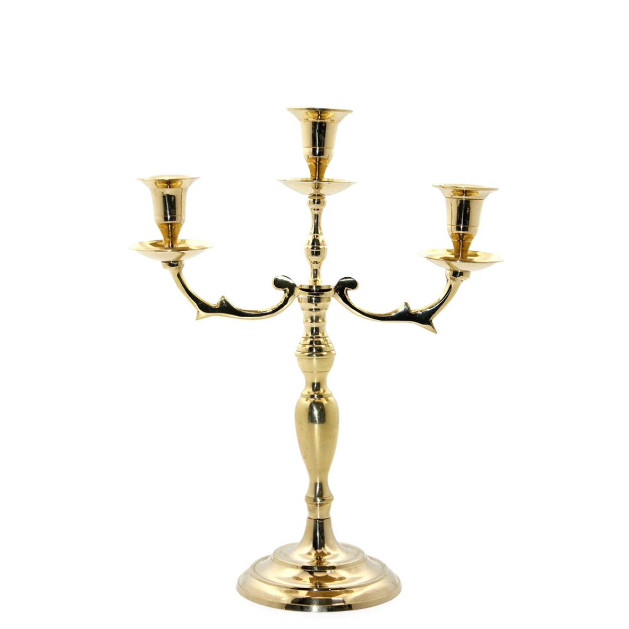 Zarif Pirinç Üç Kollu Şamdan | Ev Dekoru için Klasik ve Parlak Metal Candabra